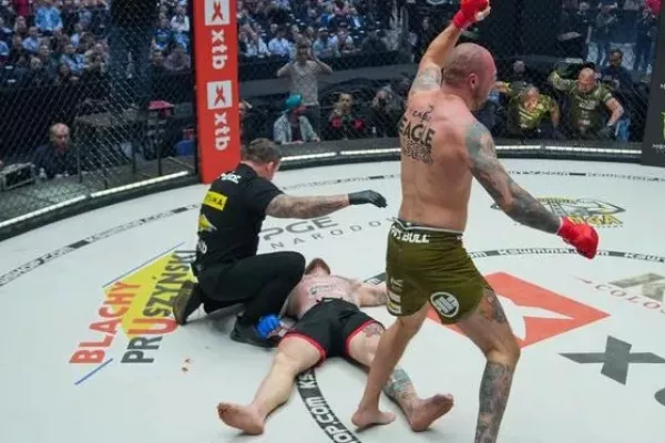 10. PROFESIONÁLNÍ ZÁPAS MMA Výsledek: KO (Flying Switch Kick and Punches), 3. kolo 1:03 Rozhodčí: Tomasz Bronder |
